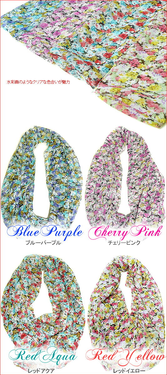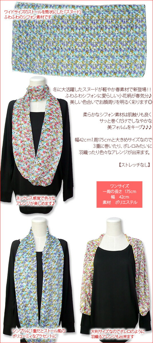 在庫限り小花柄ふわふわシフォンスヌード♪ふわふわシフォンに愛らしい小花柄を敷き詰めました♪【マフラー・ストール・ネックウォーマー・フラワー】[春物]