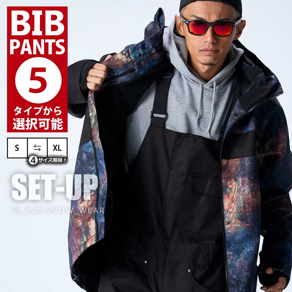 【即納/キャッシュレス5%還元】スノーボード ウェア メンズ 上下セット 2019-2020 ダブルレイ W_RAY スノボウェア レディース ユニセックス 迷彩 ジャケット & ビブパンツ セットアップ スノーボード スノボ ウェア 15カラー おしゃれ デザイン C-PAT bibset372-378_m